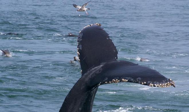 藤壶大量寄生在鲸鱼身上,有时甚至可以达到惊人的500公斤,但这个重量对鲸鱼来说不算什么,就像给人体多穿了一件外衣。