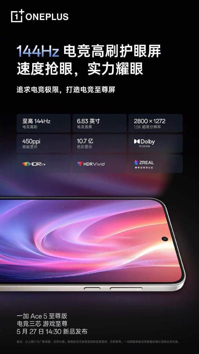 至尊版采用一加有史以来强悍的6.83英寸1.5K AMOLED电竞屏,支持高达144Hz刷新率,显示更流畅、画面响应更快,对比竞速版最高120Hz明显更有优势。更重要的是,这块屏幕支持OPPO晶盾玻璃、明眸护眼2.0、3840Hz高频PWM调光,护眼体验拉满,长时间游戏不易疲劳。