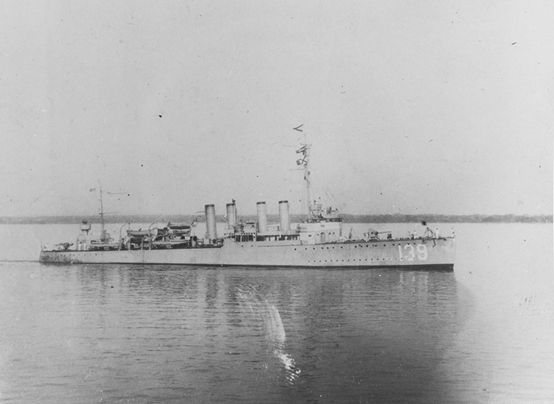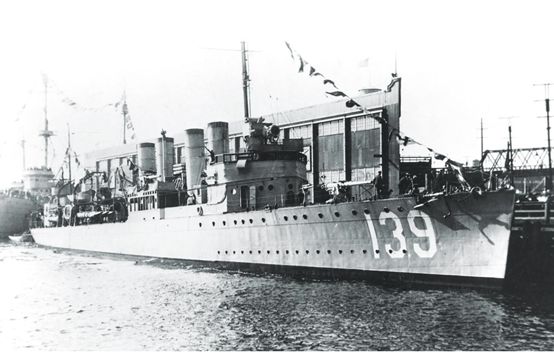 图1.“沃德”号驱逐舰,长95.81米,宽9.42米,排水量1267吨,属“威克斯”级,1918年5月15日铺设龙骨,6月1日下水,同年7月24日正式服役。1920年7月,该舰正式启用舷号DD-139