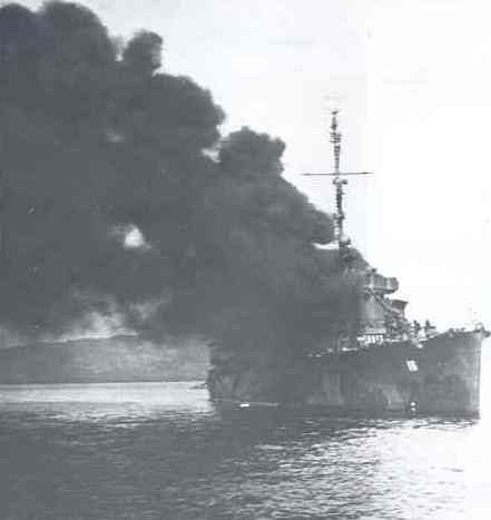 图14.在菲律宾附近遭日军神风自杀机撞击后,“沃德”号燃起了无法控制的大火