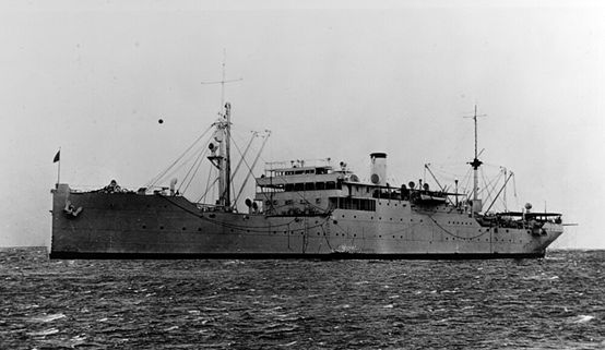 奥特布里奇戴上眼镜,披上衣服(讽刺的是,他披的还是一件日式和服……),登上舰桥时,发现舵手和几名水兵正凝视着前方约七百码处,一个黑色物体正微微露出水面。左舷方向,海军货船“天蝎座”号(USS Antares,AG-10)正拖曳着一艘驳船驶入港口,那个移动的黑色物体躲藏在“天蝎座”号与驳船之间,仿佛企图跟在船后偷偷摸摸地溜进去。那是一座潜艇的指挥台围壳!而且样式与美国潜艇的指挥台围壳截然不同。