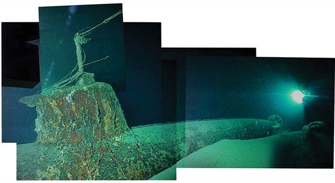 最后说句题外话:在珍珠港事件发生后的六十多年里,“沃德”号驱逐舰的舰员们始终面临着质疑:倘若他们真击沉了一艘日军“甲标的”,其残骸何在?对此,就连著名深海探险家罗伯特·巴拉德(Robert Ballard)在2000年的搜寻中也一无所获。直到2002年,一支科学考察团队在执行例行任务时,两艘载人潜水器在水下约四百米处发现了那艘微型潜艇,它沉没在港口以南约三海里处,舱门紧闭,艇上的两枚鱼雷完好无损,而指挥台围壳上赫然留着弹洞。其中一艘潜水器的驾驶员特里·科比(Terry Kerby)称这是“令人警醒的时刻,因为我意识到正是这一击点燃了太平洋战争的烽火”。