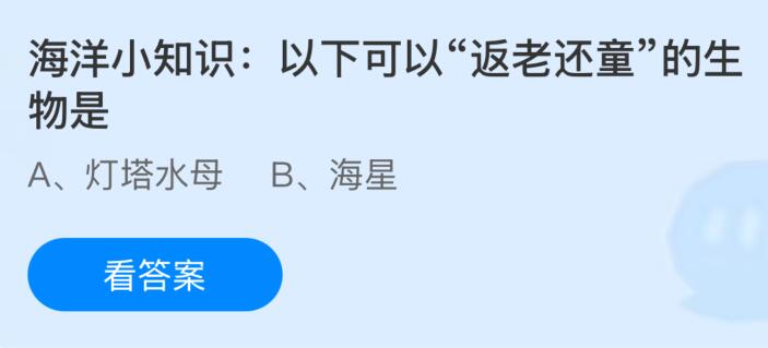 蚂蚁庄园今天问题正确答案:以下可以“返老还童”的生物是灯塔水母还是海星?