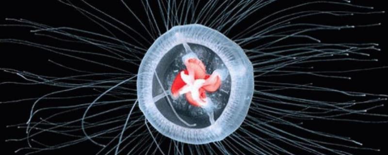 灯塔水母属于小型水母,直径和高度差不多尺寸,身体呈透明状,可见红色消化系统,看上去像灯塔一样。