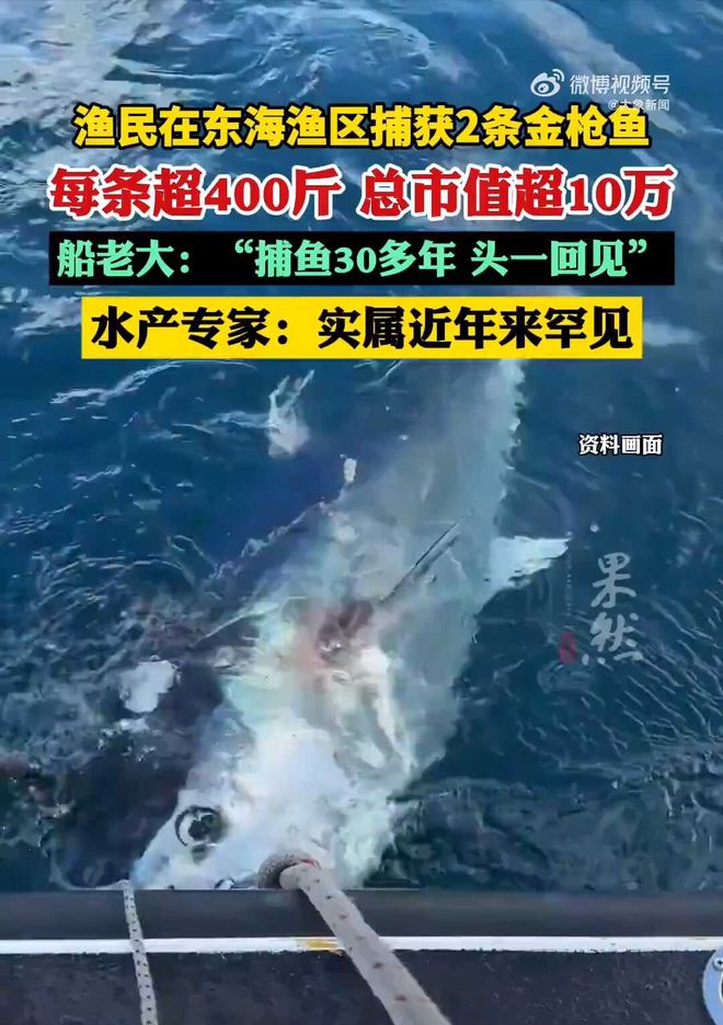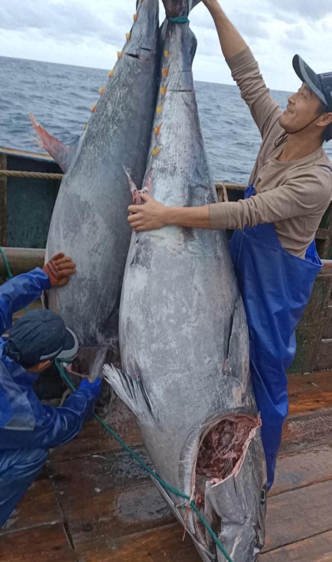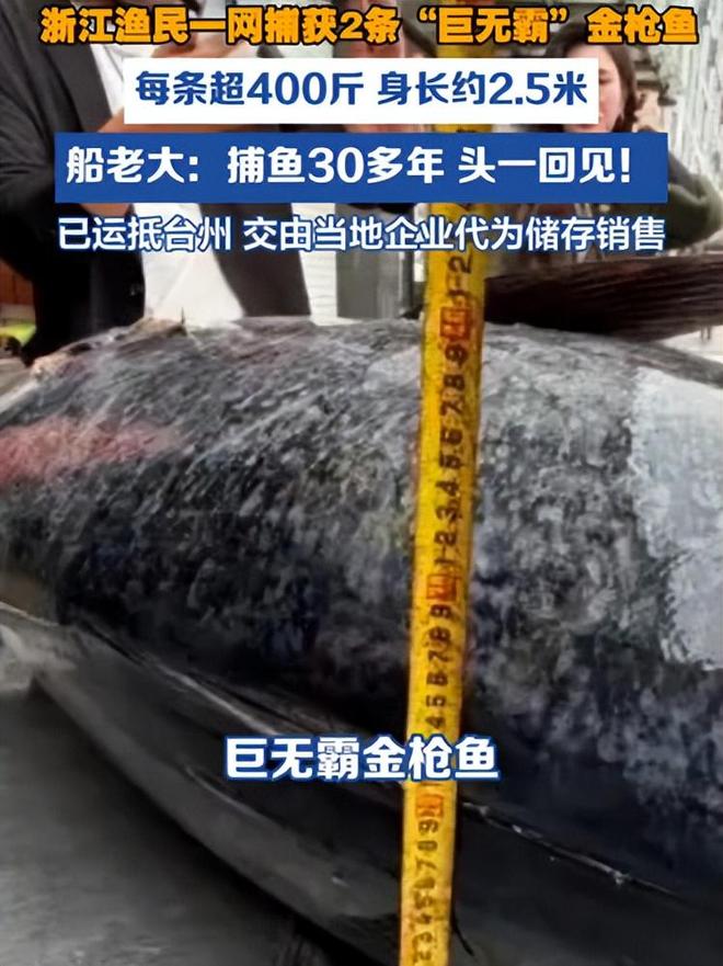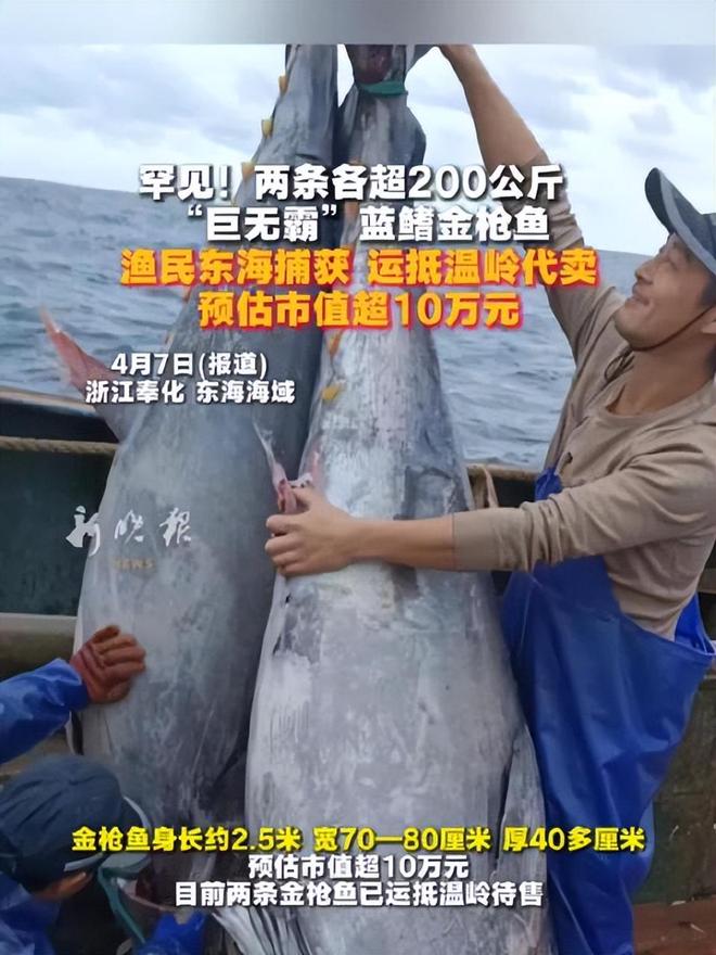 “我捕鱼三十多年,常年在东海作业,还是头一回见到这么大的金枪鱼,而且一次就遇上了两条!”