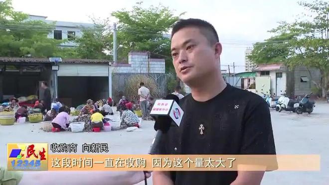 这段时间一直在收购。因为这个量太大了,有时候一天有1万斤几千斤的话,我们就会选择去分流销售,把壳能够敲成肉的就敲成肉,这样去散卖。之前我每年能收购一二十万斤,行情好的时候2.5元到3元左右一斤。