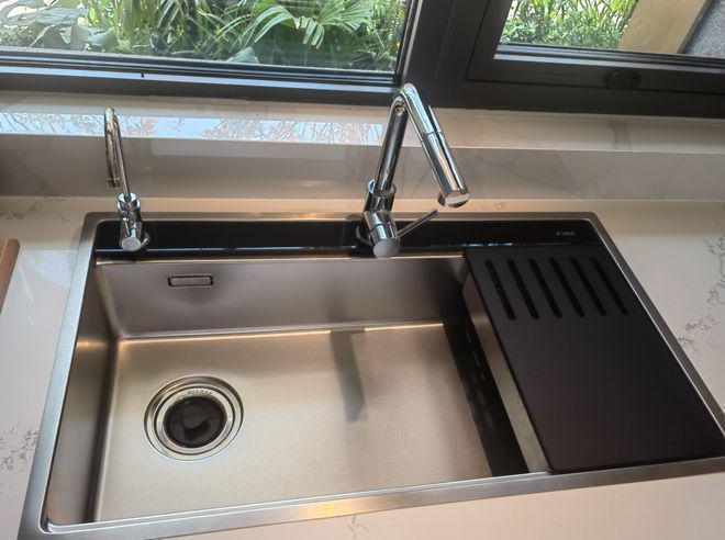 中建中环铂樾售楼处电话/地址:【预约☎】大空间的单水槽设计,方便实用;抽拉式龙头,随心抽拉,精准复位,360度可旋转,清洗水槽无死角!