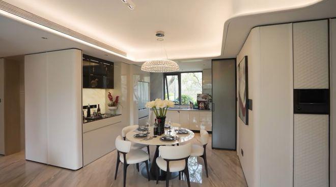 中建中环铂樾售楼处电话/地址:【预约☎】中环铂樾客餐厅一体化设计,远超同类面积标准的大尺度餐厅,不仅放得下圆形大餐桌,旁边还配备了餐边柜!剩余空间依然阔绰从容!
