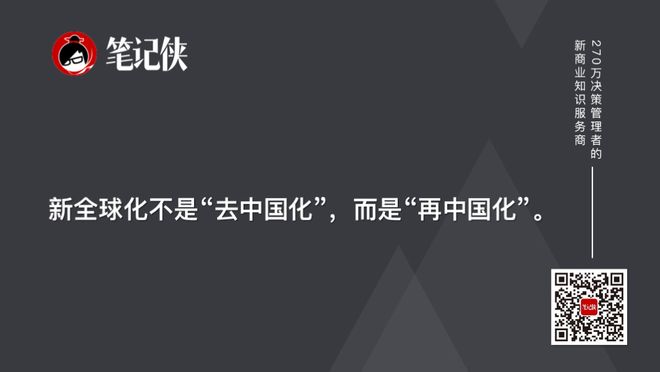 新全球化不是“去中国化”,而是“再中国化”, 我们要用我们的智能制造技术、我们的全产业链优势、我们的营销品牌以及我们的价值观,重新定义世界需要中国的方式。