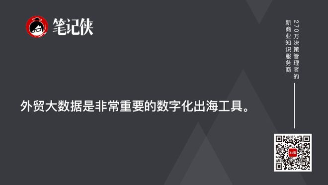 就像我们环球慧思的数据产品也已经实现大规模出海,在中国境内为全球100多个国家和地区的进出口企业提供贸易大数据服务,我们的人员全部在国内,但通过数字化交付我们可以为全球企业提供大数据精准营销服务。