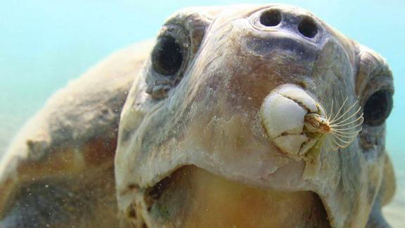 除了鲸鱼,海龟也是藤壶最喜欢附着的海洋生物。海龟行进缓慢,为藤壶的附着提供了有利条件。