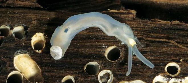 这种生物其实是一种特殊的贝类,身体像虫子一样。它们会钻进木头里,一边前进一边打洞。